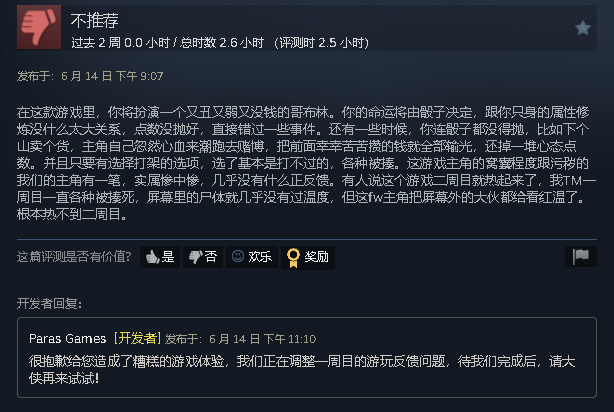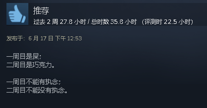 所以整体体验下来,一些玩家的大致感受就是:玩家必须先按作者的意愿,在一周目受尽折辱,到了多周目才能爽一爽。但这第一关的体验,已经让他们不堪重负,就更别提继续了。