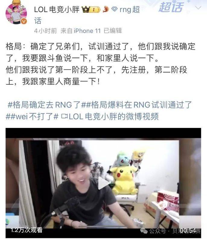 接着斗鱼主播格局爆料:自己在RNG试训通过了,已经确定了,wei不打了,RNG没有打野了。并且透露自己要注册完毕后才能上场。另外格局也透露:选择自己可能是因为自己便宜,别人身价都是几千万几百万,自己只有几万块。