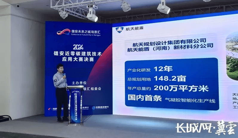 近零碳建筑技术应用大赛决赛现场,航天规划设计集团带来的“航天能盾”气凝胶复合保温板受到关注。这一项目负责人杨圣奇介绍,该产品防火性能达A1级,导热系数低至0.020W/(m·K),是传统材料厚度的40~60%,建筑使用面积可增加3~5% 。