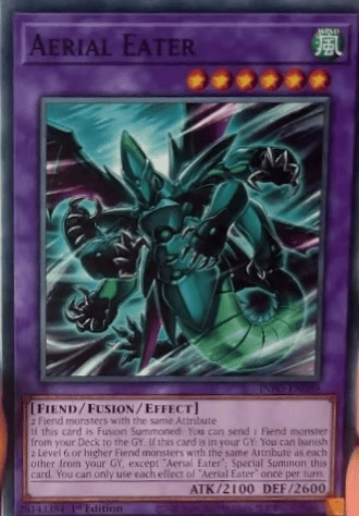 这个卡名的①②效果1回合各能使用1次。①:这张卡融合召唤的场合可以发动。从卡组将1只恶魔族怪兽送入墓地。②:这张卡在墓地存在的场合,可以从自己的墓地将除「Aerial Eater/气流吸食者」之外的、属性相同的等级6以上的2只恶魔族怪兽除外发动。将这张卡特殊召唤。