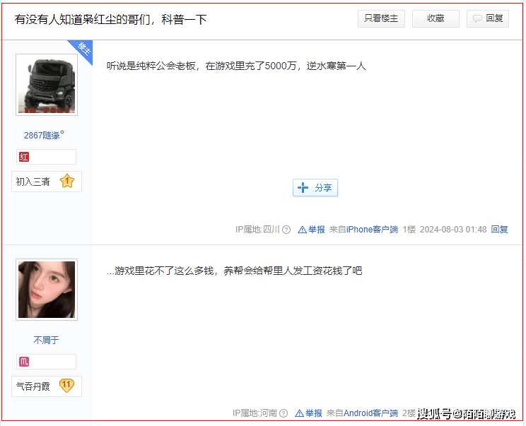 按理来说,如此级别的大佬在绝大多数网游里都绝对是T0级别,但奈何《逆水寒》开服6年以来,确实吸引到了太多的究极神豪入驻!在之前玩家提名枭红尘大佬后,不少《逆水寒》中的老玩家都站出来反驳,甚至有人用自己的亲身经历表示,他曾经见过光帮会成员工资就发出去数千万的神豪存在。