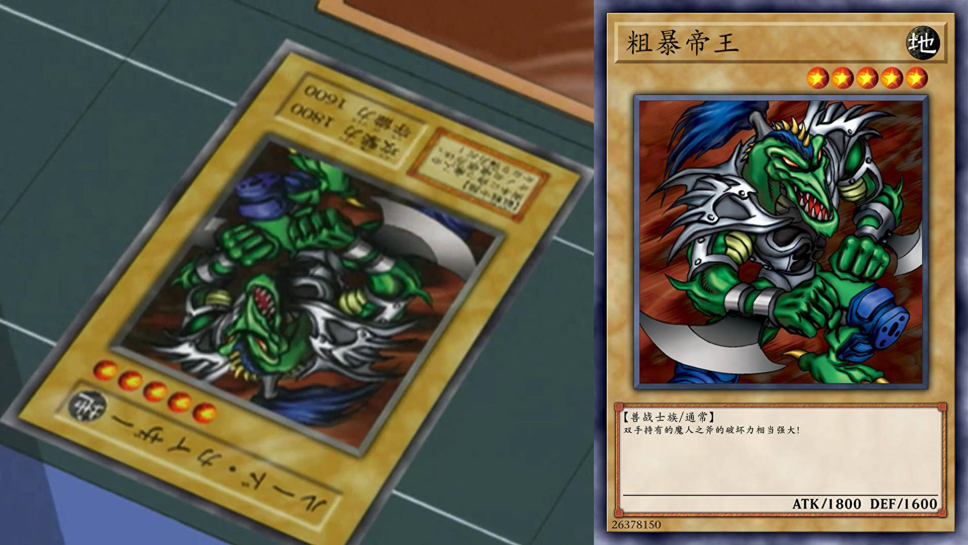 粗暴帝王[怪兽|通常]兽战士/地[★5]1800/1600。描述:双手持有的魔人之斧的破坏力相当强大!