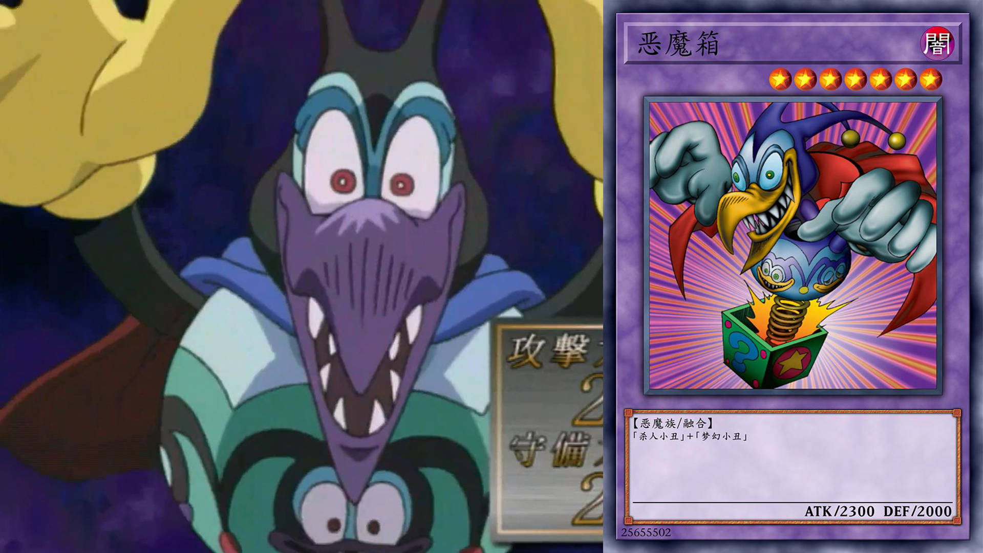 恶魔箱[怪兽|融合]恶魔/暗[★7]2300/2000。融合条件:「杀人小丑」+「梦幻小丑」