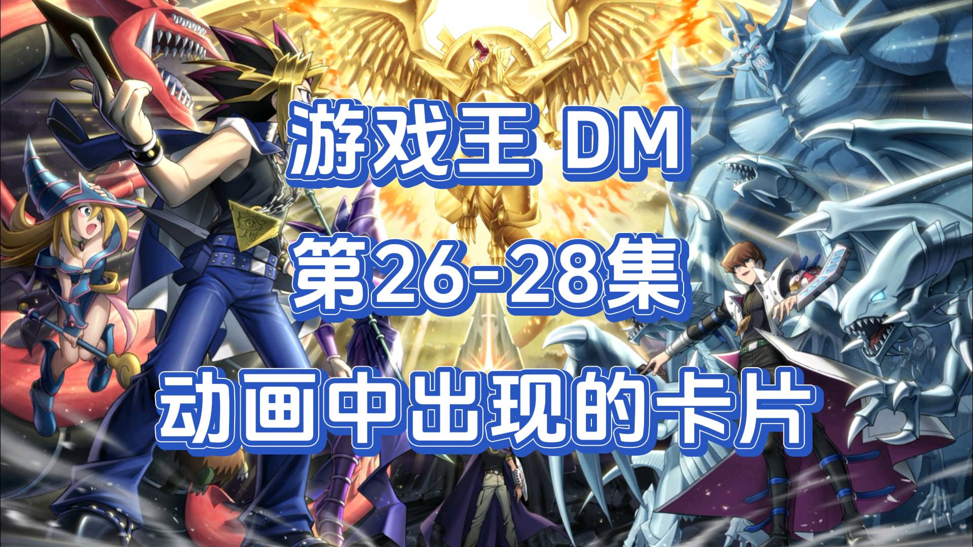 游戏王DM第26-28集中新出现的卡片对比有:粗暴帝王、卡通鳄鱼、鹦鹉龙、催眠术、暗黑兔、卡通世界、光之城、青眼卡通龙、攻击无力化、暗之咒缚、复制猫、恶魔箱。其中“粗暴帝王”在第一集出现过,因卡图不全,这里卡图完整,故而再次加入。