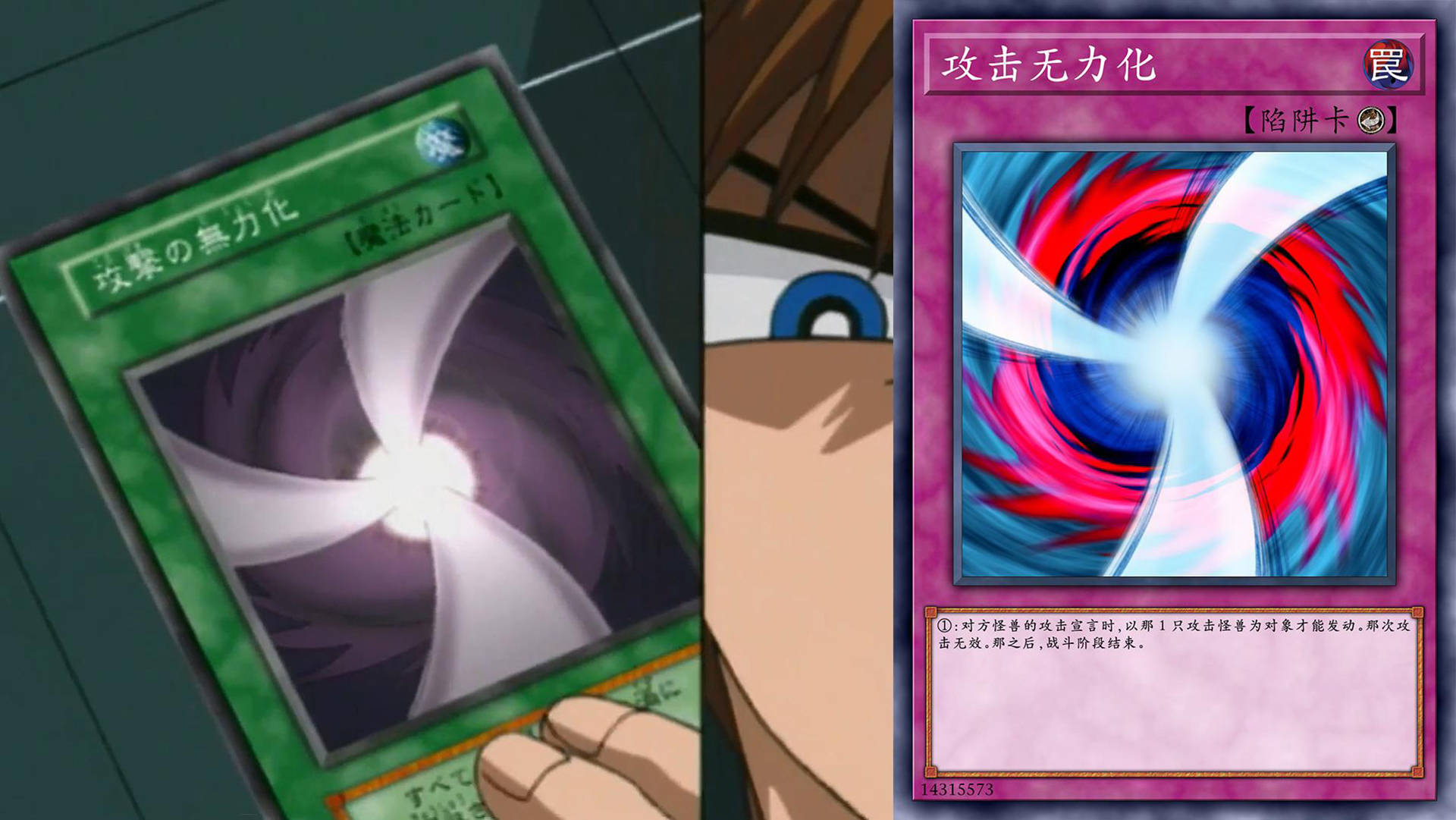 攻击无力化[陷阱|反击]。效果:对方怪兽的攻击宣言时,以那1只攻击怪兽为对象才能发动。那次攻击无效。那之后,战斗阶段结束。