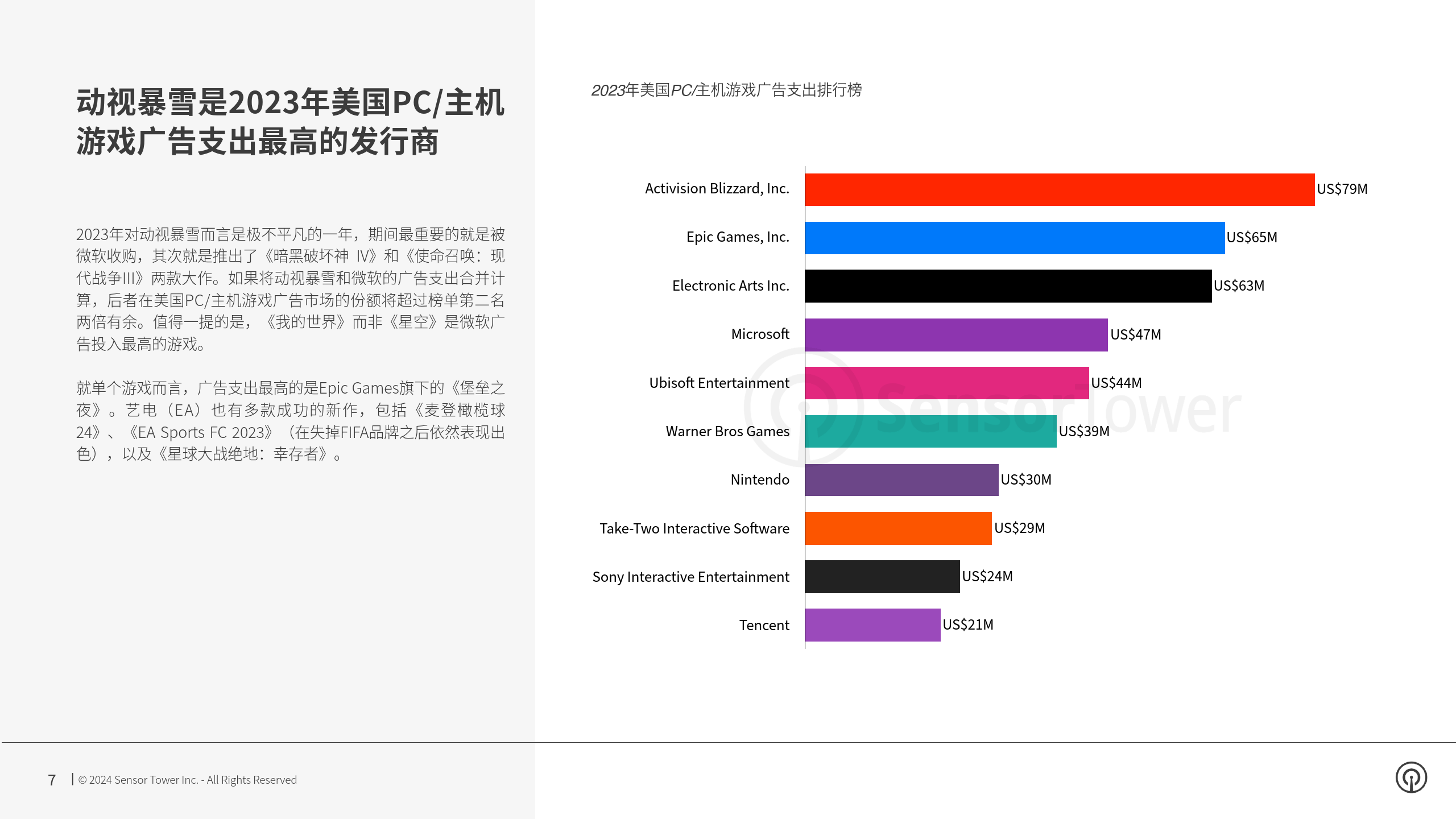 动视暴雪是2023年美国PC/主机游戏广告支出最高的发行商
