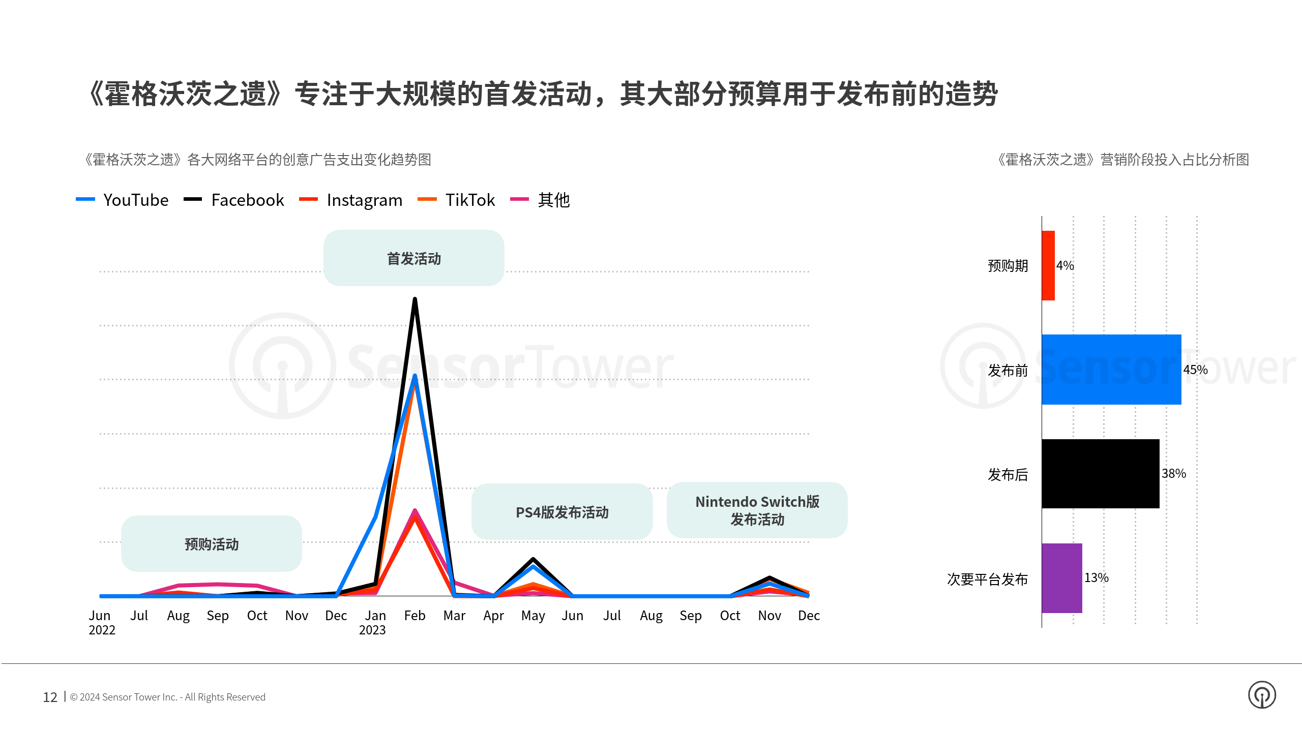 相较于2022年,媒体矩阵正在愈发多样化,Facebook、TikTok和Instagram正在蚕食YouTube的市场份额。游戏直播龙头Twitch也实现了显著增长。