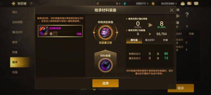 继承并非简单地复制强化等级,而是根据目标装备和源装备的强化充能需求进行调整。例如,高等级装备对强化值的需求更高,因此当低强化等级的史诗装备继承给高等级神器时,强化等级可能会提升;反之,则可能下降。但无需担心,再次继承回原装备时,强化等级保持不变。