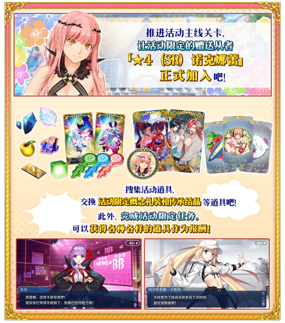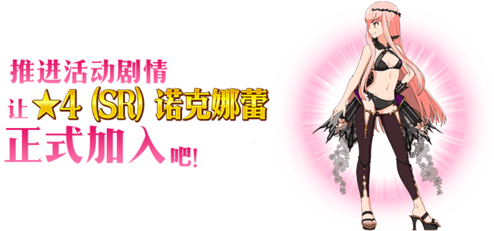 推进活动主线关卡,活动限定的赠送从者「★4(SR)诺克娜蕾」将正式加入。