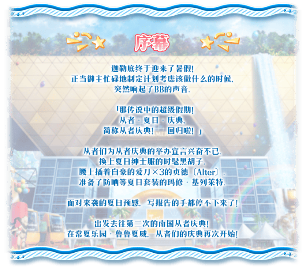 还请享受在与夏威夷群岛结合的梦之度假地·鲁鲁夏威举办的全新“从者庆典”。
