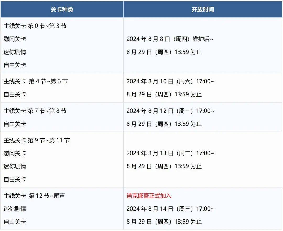2024年8月8日(周四)维护后~9月5日(周四)13:59为止