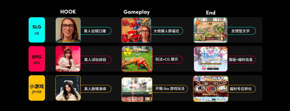 另外在投放节奏上,TikTok for Business也提供了覆盖游戏生命全周期的解决方案。在预注册阶段触达更多用户,在大推期保障首周爆发,在平推期长线稳住成本,助力ROAS的提升,以最适宜的节奏延缓买量的边际效用。