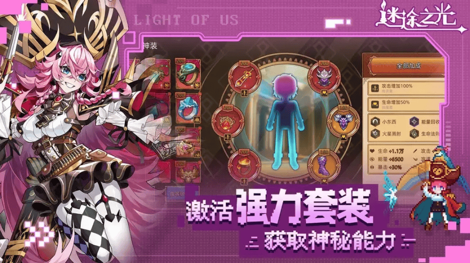 这款游戏具备非常丰富的人物设定,每位角色都可以通过天赋加成进行强化。天赋系统也非常完善,使得《迷途之光》的角色成长成为了一个亮点。玩家可以根据战斗状况选择合适的角色上场,并搭配技能。每个角色的性格鲜明,各具特色。如果您也钟爱具有多样性的角色风格,那么绝对不要错过尝试这款游戏。