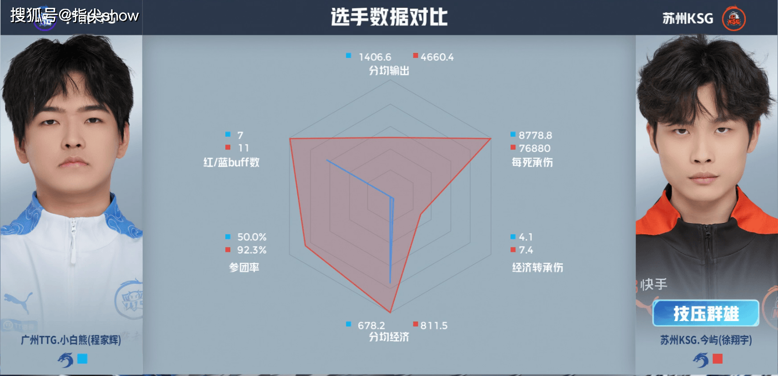 局间被KSG连冲了几波,导致TTG毫无抵抗之力,虽说没有形成绝对的碾压之势,但也算是以快节奏的方式拿下了比赛,小白熊这场表现突出一个无用,看上边的雷达图就知道这局比赛他都做了什么。