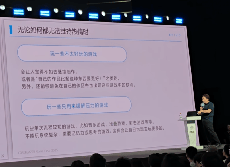 数年前,我们也曾报 道过这款黑马独游作品。在真正杀入大众视野前,。在外界的印象里,KEIZO是一个非常内向、甚至有些社恐的日本开发者,但在有着几百名观众的现场,他用大白话把十四年里遇到的挫折和犹豫讲了个透。