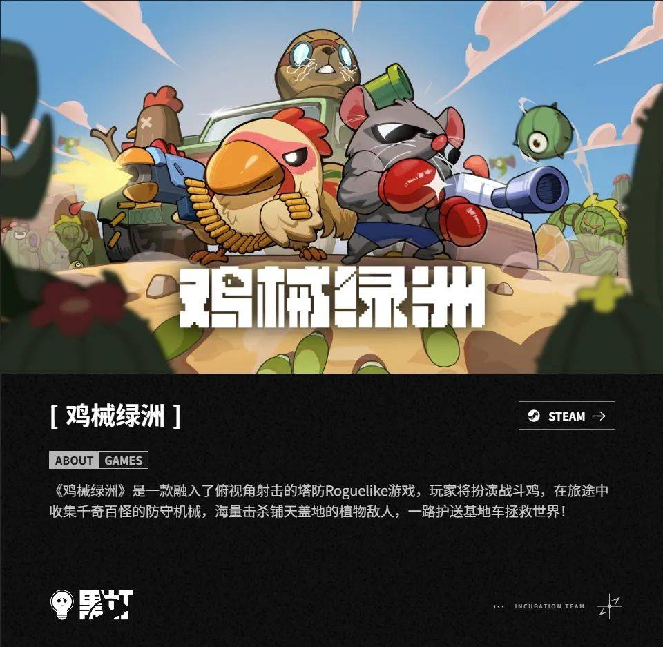 在开拓芯官网,《鸡械绿洲》的开发商黑灯工作室不失幽默地称自己为“班级编制”
