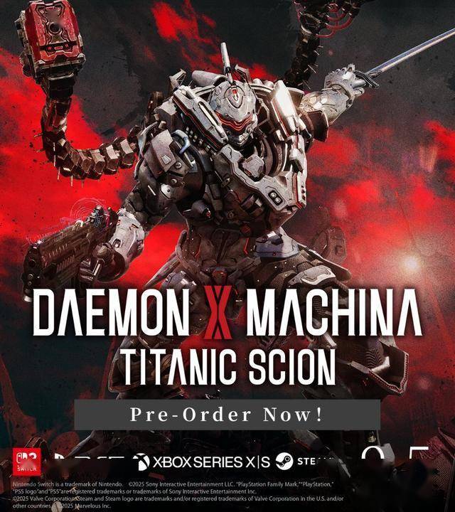 Marvelous Inc.宣布,预定于9月5日发售的机甲动作游戏《机甲战魔 神话之裔》(原名《DAEMON X MACHINA TITANIC SCION》)将登陆NintendoSwitch™2、PlayStation®5、Xbox Series X|S以及Steam®平台,今日正式公开最新游戏实机游玩介绍影片。
