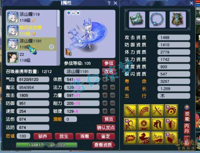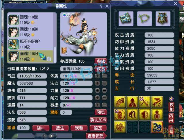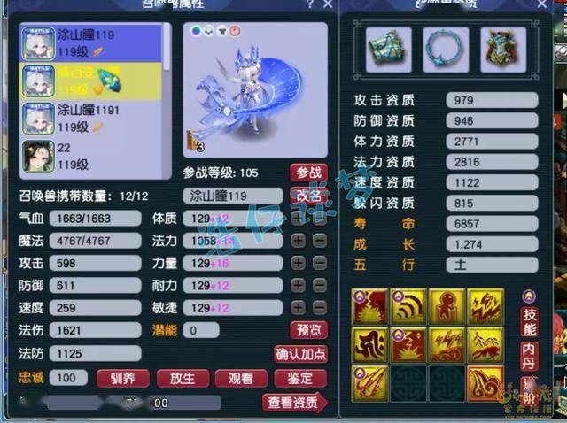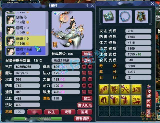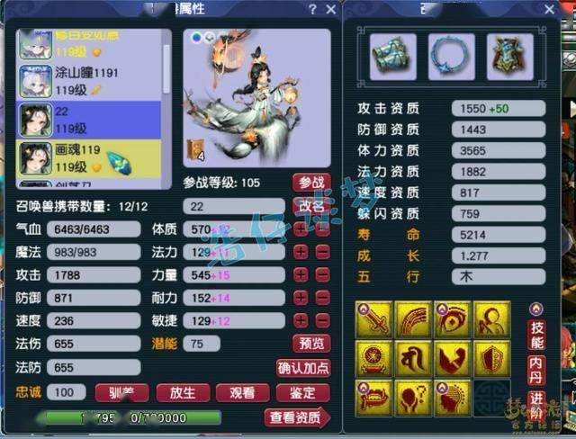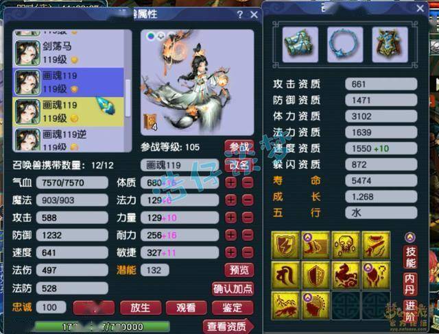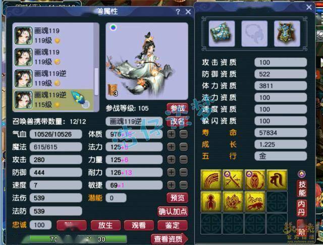 12技能死亡法防净台神马血宠画魂,这只同样是一只3赐福的宝宝,资质再养一养就完美了。