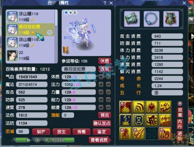 12技能净台神马善恶血攻涂山瞳,成长资质再养养会更完美,赐福了4个超级技能。