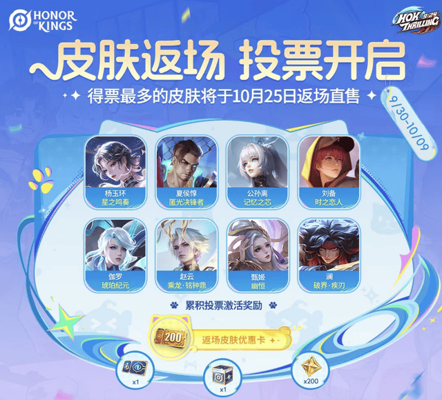 据悉,华语乐坛天王林俊杰正式成为王者荣耀国际服Honor of kings品牌代言人,全新主题曲将在10月9日正式上线。与此同时,王者荣耀国际服还会在9月30日至10月9日期间发起皮肤返场活动,如杨玉环星之鸣奏、公孙离记忆之芯,还有赵云乘龙铭钟鼎、刘备时之恋人等皮肤,得票最多的皮肤将在10月25日返场直售,如果有喜欢的皮肤玩家们抓紧上线投票啦。