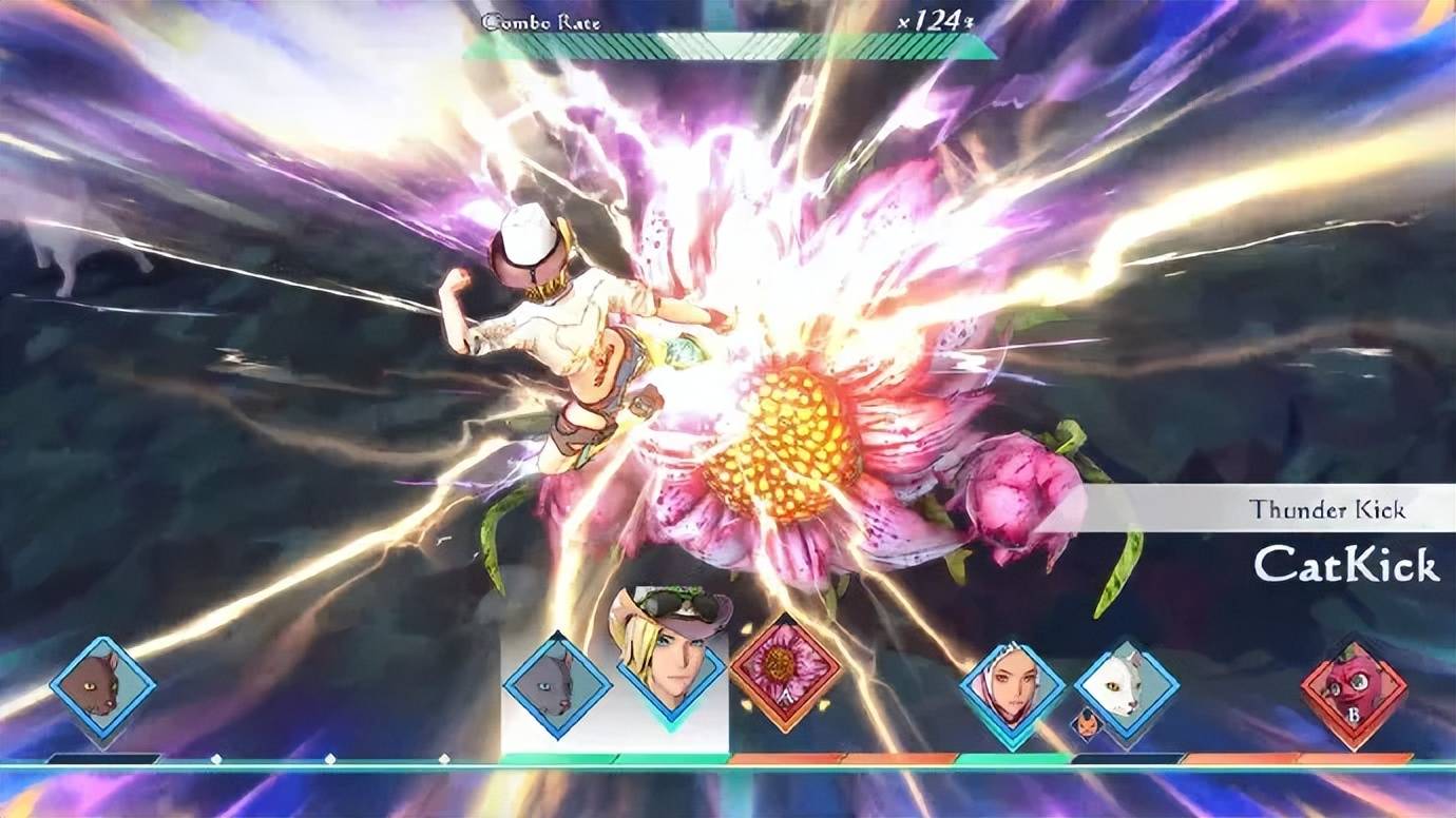 战斗核心机制是攻击敌人弱点使其倒地,从而获得再次行动的“1 MORE”机会,并最终发动集体总攻击。