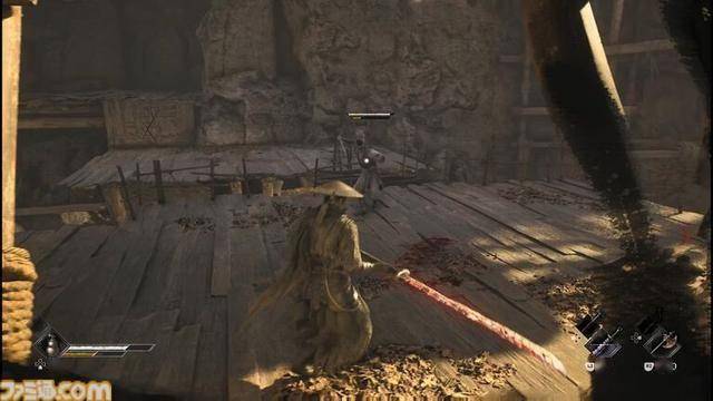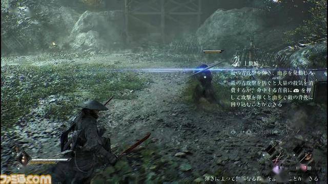 除了利用后撤步进行回避或防御外,若能在恰当时机按下 L1 键,还可以格挡并弹开敌人的攻击。此外,敌人除了普通攻击,还会使用强力的“蓝色攻击”和“红色攻击”。在成功弹开蓝色攻击时,会触发“鬼步”,角色瞬间闪到敌人背后并造成伤害。