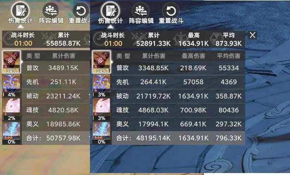 接着当我们取下神赐魂环,换上普通魂环,则此时这个队伍的伤害便会下降到42000K-45000K左右徘徊,降幅大概就在20%-25%之间,这个数值大家可以先行参考一下。