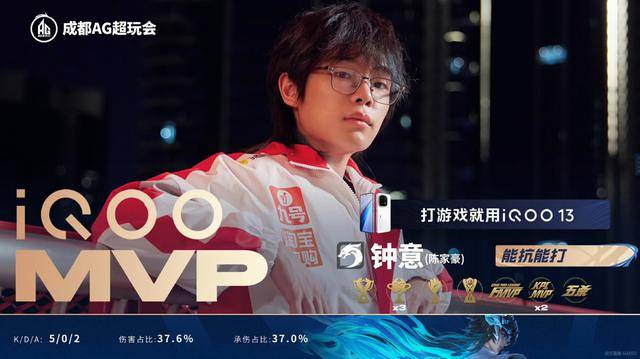 钟意的大司命打出了37%输出加37抗伤的数据,拿到MVP也是实至名归,确实夸张。