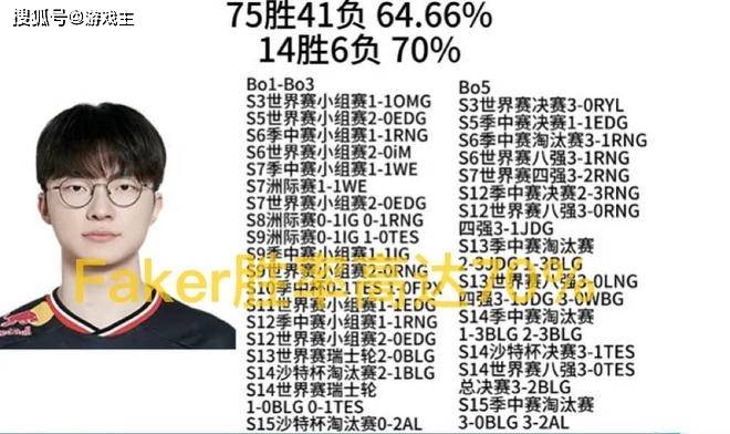 昨天讨论了lpl赛区选手面对lck的胜率引来了很多粉丝的热议,网友也是再度统计了一下lck顶级职业选手的胜率,结果发现和lpl赛区的差距还是非常大的,Lpl赛区面对lck胜率最高的是中单选手knight只有53%,但lck赛区的一些顶级职业选手胜率都基本上超过了60%,甚至有些人已经达到了70%多。首先来看一下中单选手faker职业生涯是75胜41负,胜率达到了64.66%,Bo1的胜率达到了70%,BO 5的胜率也来到了68.4%,更恐怖的是他在世界总决赛的舞台中面对lpl赛区的队伍保持了BO5 100%的胜率,输掉的比赛都是在msi或者洲际赛上。