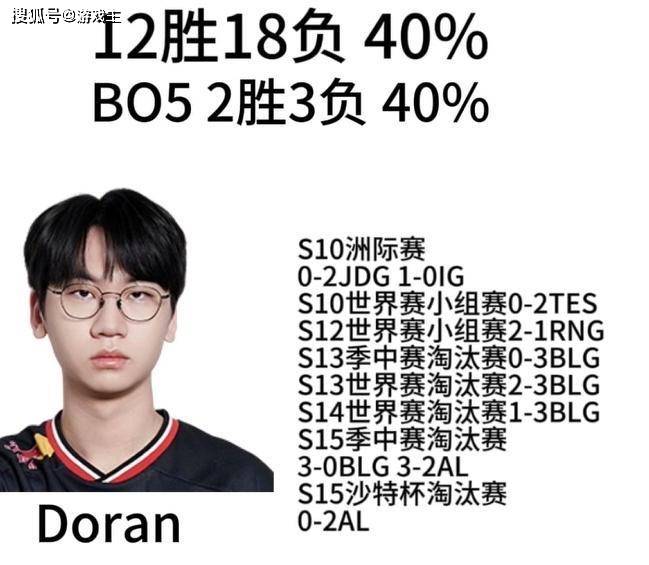 大家好,S15赛季的比赛已经正式开始了,相信绝大多数玩家都关注了最近一段时间的对抗,各大赛区都进入到了一小段时间的休赛期,现在大家最关注的应该就是世界总决赛的对抗。lpl赛区和lck赛区已经交手很多年了,但在近几年的对抗中,lpl赛区的状态非常的差劲,每一年都会被lck轻松拿捏。这个赛季的改版让世界赛的首场比赛就是王炸,有网友统计了一下lck赛区顶级职业选手面对lpl赛区的胜率,结果发现中单选手faker的胜率高达70%,而且在全球总决赛的舞台中,他们一次BO5都没输过。但从数据分析来看,多兰拖了后腿,胜率只有40%。