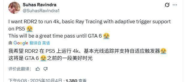 因此,@SynthPotato认为有理由相信R星很快就会公布《荒野大镖客2》的“重制版”,而在现代主机上也很快迎来60FPS的《荒野大镖客2》。