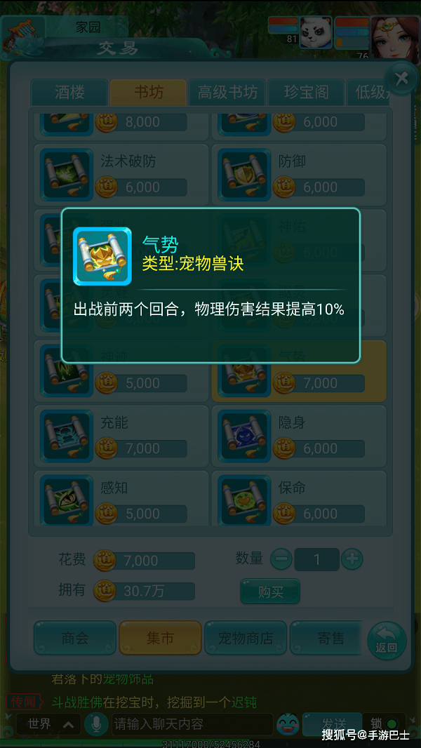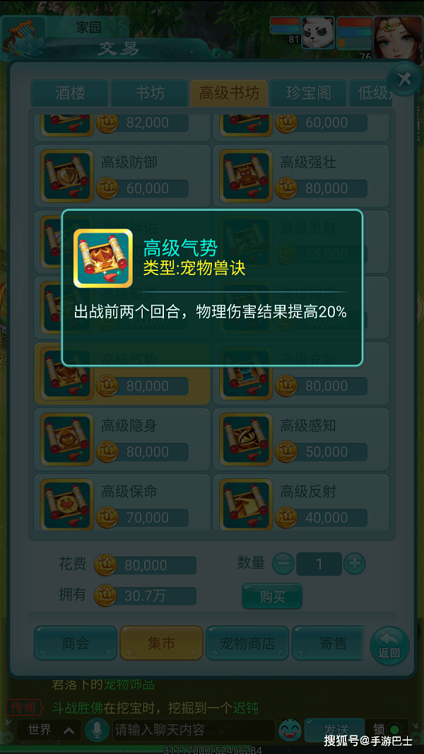 而“高级气势”作为其进阶版,效果更是直接翻倍——物理伤害结果提升20%。这类技能尤其适合搭配“游击战术”型宠物,出场爆发两轮后便换下场,等待时机再次登场,即可重新触发技能效果,实现持续的高压打击。