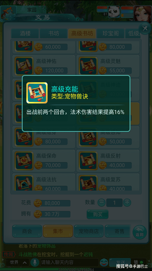“气势”有对应的法术版本——“充能”,能在前两回合提升8%的法术伤害结果;其高级版本“高级充能”则可提升16%。无论是物理宠还是法宠,都能借助这类技能,在前两回合化身真正的“输出核心”。