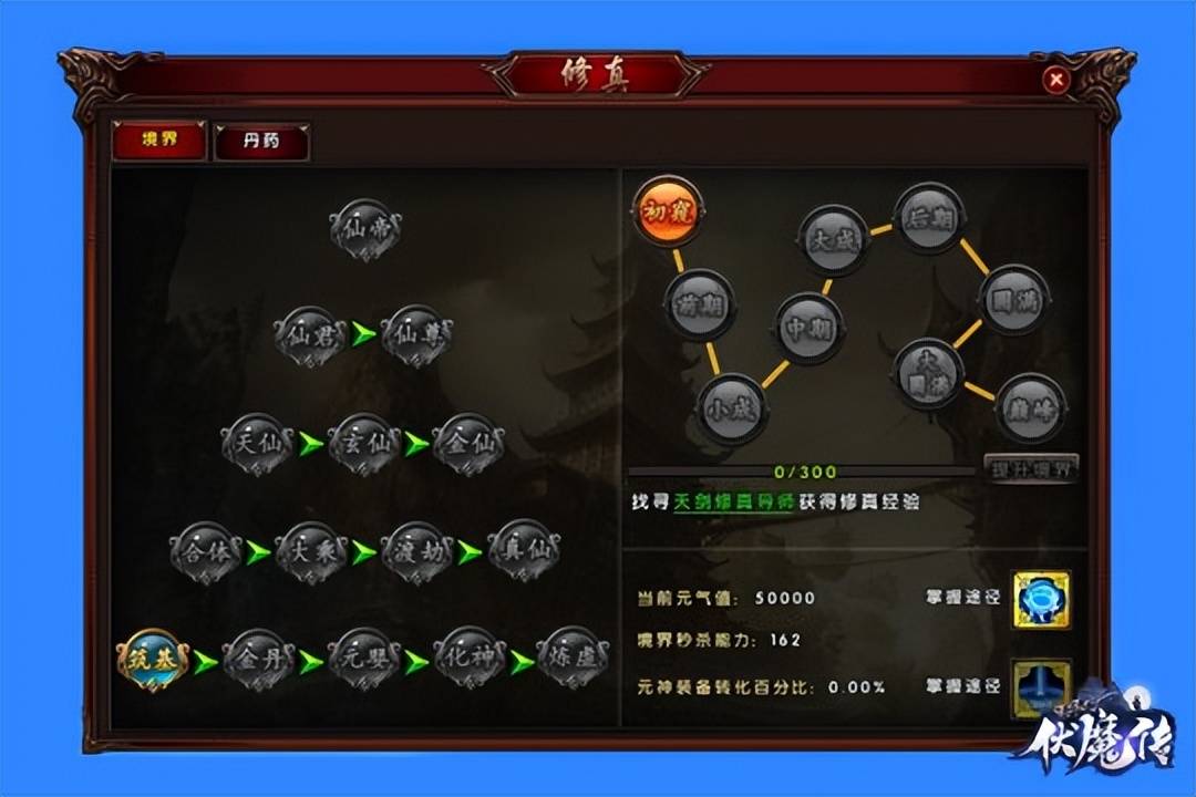 所以呢,《伏魔传》为了让玩家有那种修仙的沉浸感,专门构建15个大境界、还有9个小阶段的完整修仙体系。