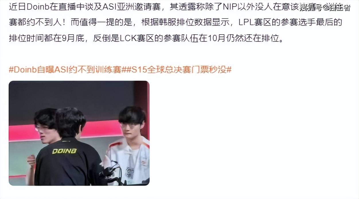 总得来说,Doinb的控诉并非孤例。在官方宣传中,ASI汇聚了JDG、WBG、NIP、DK等8支联赛中游的强队,堪称“失意者联盟的巅峰对决”。