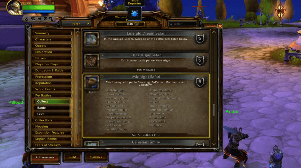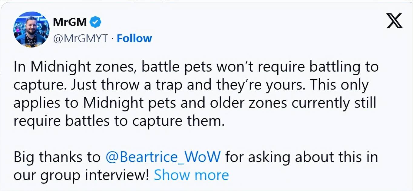 值得一提的是,新捕获的宠物无法升级或参与宠物战斗,虽然A测版本内容不全,但似乎暴雪将从下一代资料片开始逐步淘汰宠物战斗玩法。一个证据,是魔兽主播Bears_Adventures在之前一次采访游戏总监Ion Hazzikostas时,后者曾表示12.0可以获得宠物,但不包含战斗元素,因为玩宠物对战的人太少。另一证据是12.0的宠物收集成就将这些宠物改称“野生宠物”,而非之前的“战斗宠物”,并且新地图也没有需要战斗的宠物。