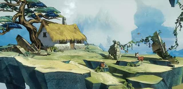 而爷爷的家则是一派温暖的中式田园风——茅草屋檐下藤蔓轻垂,葫芦在风里晃啊晃,像极了中国山水画里的留白意境。连家具外观都藏着小心思~