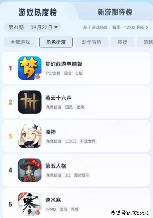 要知道,它的榜单邻居是《王者荣耀》《使命召唤》《三角洲行动》这样的行业巨头,这样的成绩对于一款二十多年的回合制网游来说,简直是不可思议的突破,而在角色扮演类目中,《梦幻西游》更是连续三周稳居第一,力压《燕云十六声》《原神》等当前最具人气的新品和热门大作。