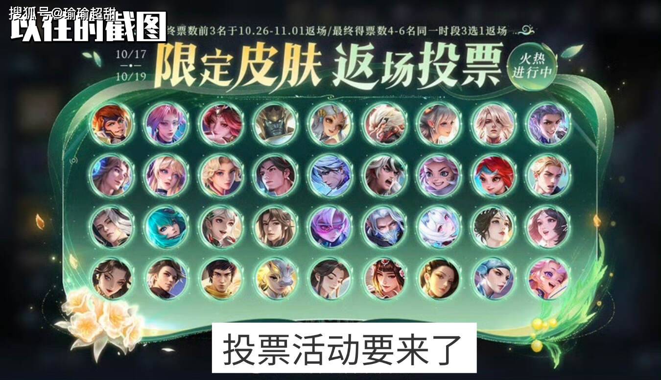 然后就是周年庆的投票活动,这个活动我觉得每年都是比较受欢迎的,因为这个活动有一个超级福利,除了可以给自己喜欢的限定皮肤投上一票之外,在票选池里面的皮肤都会限免,可以免费体验一下自己喜欢的皮肤以及其他限定皮肤,所以这个投票活动还是很受欢迎的。