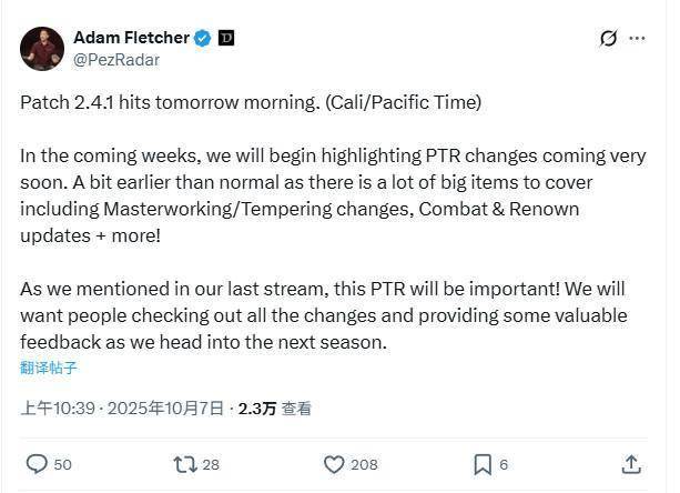 自9月24日S10赛季开服以来,《暗黑破坏神4》S10赛季仅仅过去了两周时间。然而,《暗黑4》社交兼内容营销总监Adam Fletcher已开始发推预告S11赛季内容了。