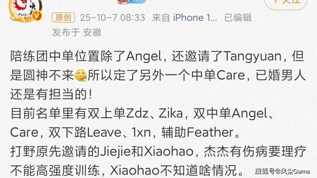 LOL世界赛陪练团,阵容大致上已经确定了,LOL博主近日发文爆料,除了此前已经确定的Angel、Zika、Leave之外,中单位新增了Care,汤圆也收到了官方邀请,但他选择拒绝,看来原神是害怕,自己训练赛战神露馅啊,官方邀请都不参与,另外ZDZ、TT双人组,也都加入了陪练团。