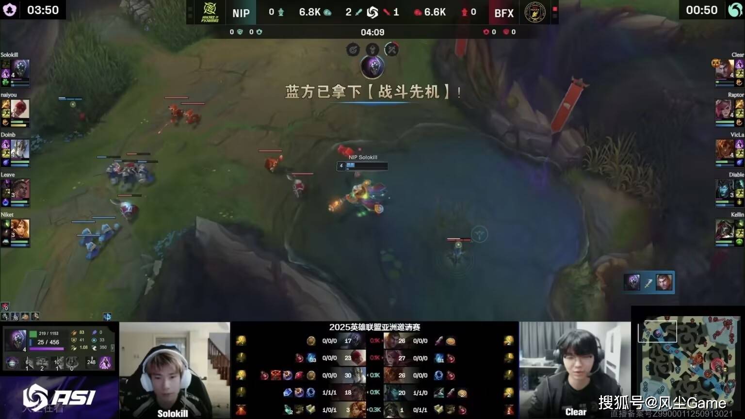 一波1换4,BFX直接完成翻盘,盲视野挤在一起往前推,是真把观众看红了,第二把前期也是大优势开局,Leave搞黑科技,玩梅尔走下,虽然3分钟不到就被越塔,但背靠防御塔,NIP打出1换2,同时上路的Solokill,也对位完成单杀,拿到优势的NIP,中期又给了一些机会,局势被扳平。