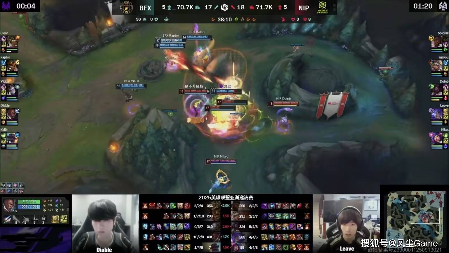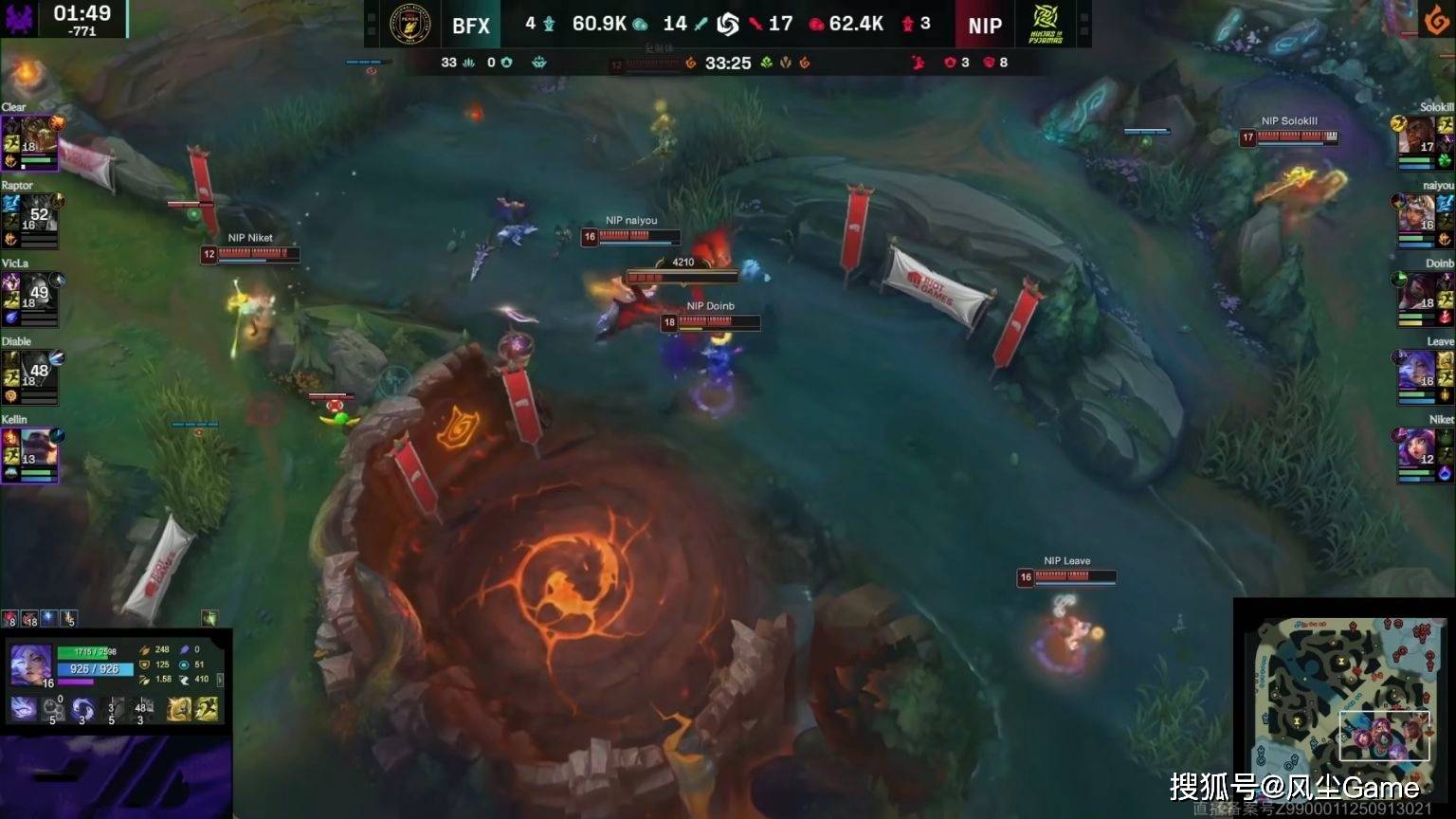 赛前大家最关注的,肯定是NIP大战BFX,毕竟这是中韩大战,比赛结果大家也都知道了,NIP跟京东一样,打LCK队伍被完虐,一个小场都没能赢,不过NIP比京东好的地方在于,他们这场BO3,撑了68分钟才输(京东输DK是57分钟),先来简单复盘一下比赛,看看NIP到底是怎么输的。