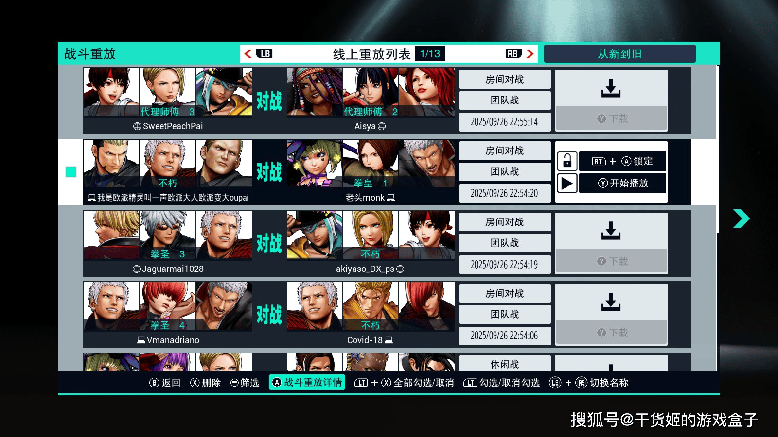 接下来聊一聊游戏的线上模式。作为格斗游戏,线上模式与异地的玩家进行比拼才是这类游戏的核心。在线上模式中,游戏提供了排位赛模式,休闲赛模式。顾名思义,在排位赛模式中,所有的比赛结果都会影响到玩家的段位,如果玩家对于排位赛的紧张激烈程度不是很适应的话,可以先在休闲赛模式中进行练习和对决。此外,玩家还可以与异地的好友进行约战,通过房间对战模式则可以实现这个需求。有趣的是,本作还提供了一个线上练习模式,也是可以方便异地的玩家之间进行训练的一个模式。此外,还有一些辅助的功能,可以帮助玩家更好的进行技能的提升,并且了解一些信息。比如战斗的回放功能,玩家可以通过下载线上的一些比赛来进行回看,了解到其他玩家是如何进行游戏的。
