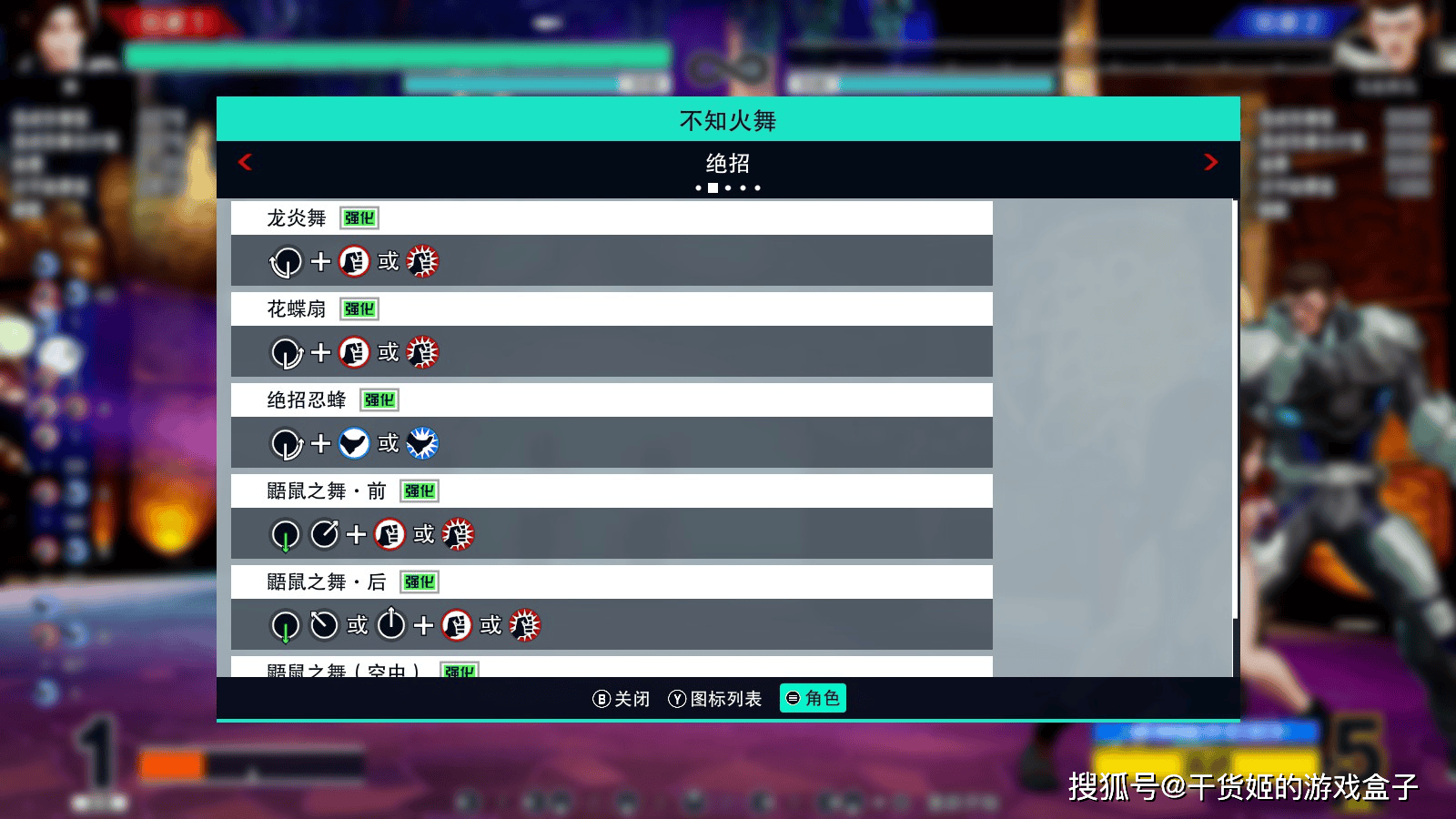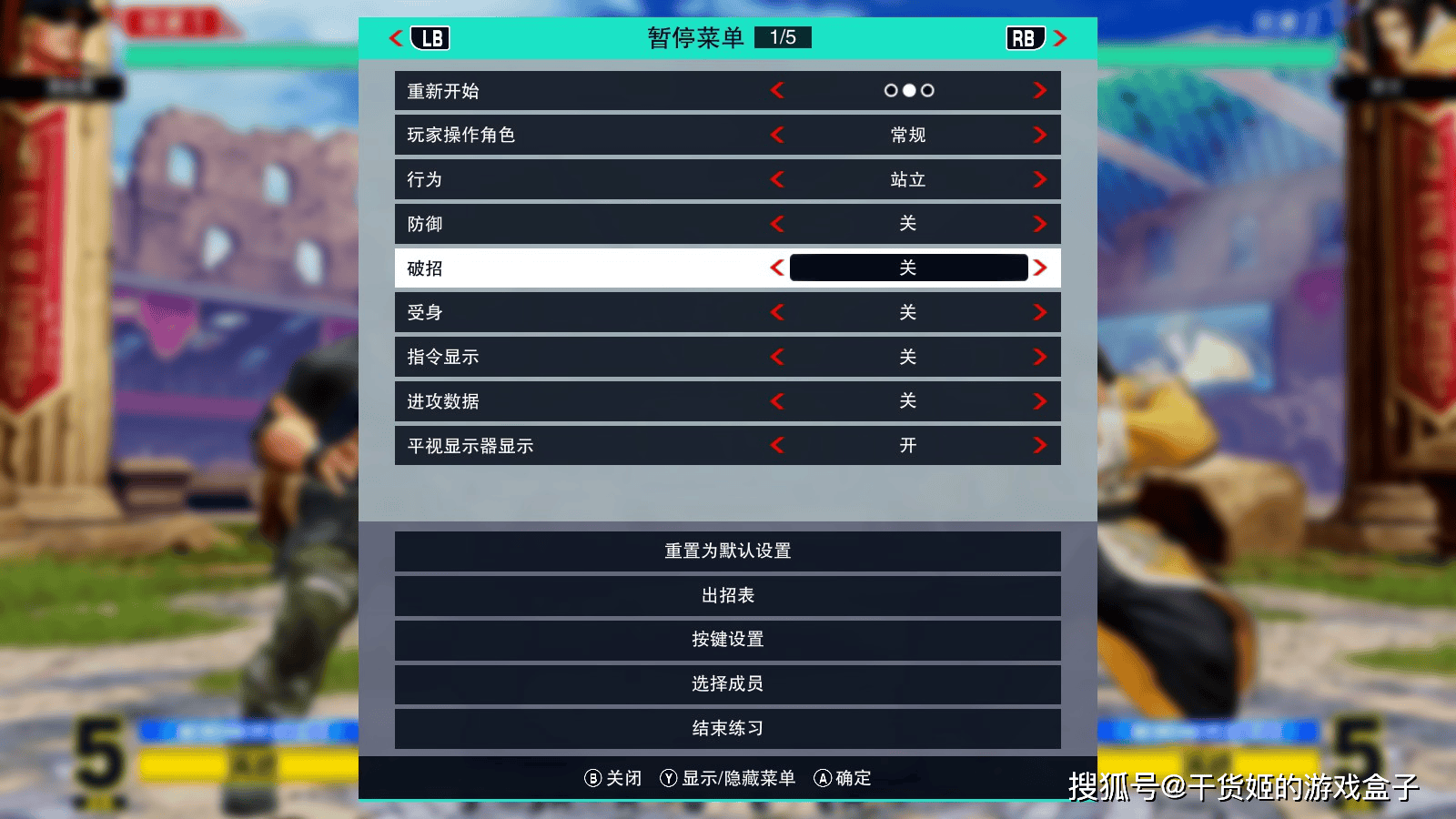 进入练习模式后,点击菜单按钮,玩家可以看到各式各样的设置。通过设置对手不同的状态来模拟真实战斗中对手的一些招式和行为方式,从而让玩家通过不断的练习来掌握最为合理的应对方式,这样在以后遇到相同的对手和出招习惯后,则可以不用那么的慌张,并且合理的化解和应对。玩家可以在出招表中查看到每一个角色的特殊技能、绝招、超级绝招、顶级超级绝招以及普通的投掷技能。此外,玩家还可以对控制器的按键进行设定,比如设置一些组合键,当然这肯定要根据玩家的操作习惯以及角色的出招表进行相应的设定。