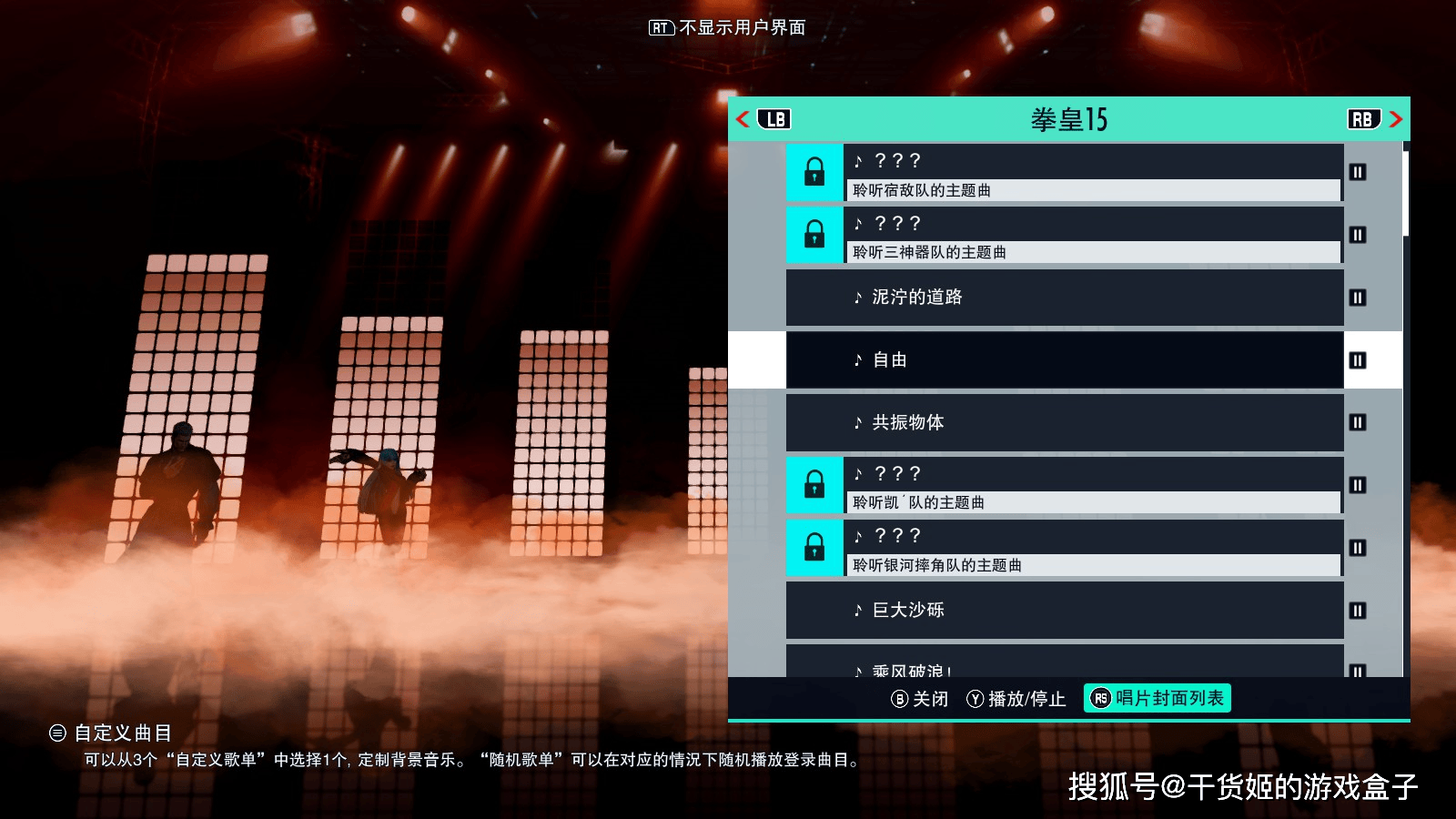 除开游戏的核心玩法战斗之外,游戏还提供了一些收集要素,值得一提的是,本作收录了拳皇系列自发售之日起至今所有的原声音乐,当然有部分的原声音乐是需要玩家完成相应的任务之后才可以解锁的,有的时候即使不进行游戏,打开游戏的唱片电台,也可以听一下午好听的歌曲。此外,图鉴收集功能则是需要玩家在故事模式中选择不同的战队和角色完成故事模式后,便可以解锁相应的视频和语音。这些内容在很大程度上可以帮助玩家回顾剧情并了解剧情的发展,甚至可以挖掘一些细节。