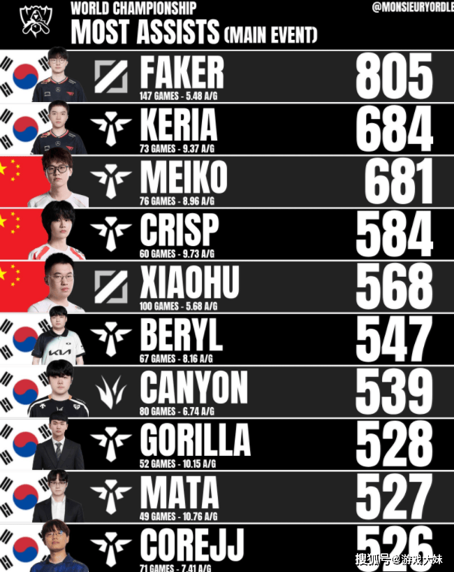 外媒统计S赛选手助攻榜,LPL三人上榜,LCK包揽前二,在英雄联盟S赛的漫长历史中,助攻这一数据往往被忽视,但它恰恰代表了团队配合与个人大局观的极致体现。