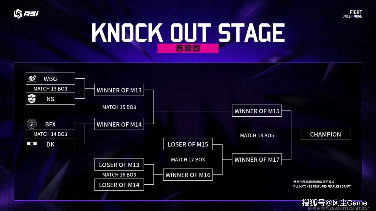 英雄联盟亚洲邀请赛,小组赛已经结束了,上一个比赛日,BFX横扫MVKE,拿下三连胜,成为小组赛唯一的全胜队伍,同时DK也在交手GAM时,以2:0的比分完成速通,拿到第三个淘汰赛名额,最后NS大战NIP,两队只打了两局,NS就赢下比赛,成功晋级淘汰赛,至此四强全部出炉。