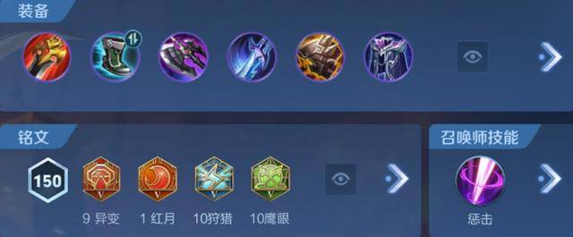 铭文搭配:9个红色异变+1个红色红月+10个蓝色狩猎+10个绿色鹰眼