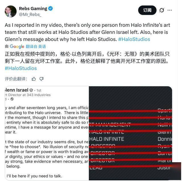就在昨天,媒体曝出已经参与开发《光环》IP 17年的资深美术总监Glenn Israel“愤怒地”离开了Xbox,暗示当今的光环工作室可能陷入了某种形式的文化斗争。